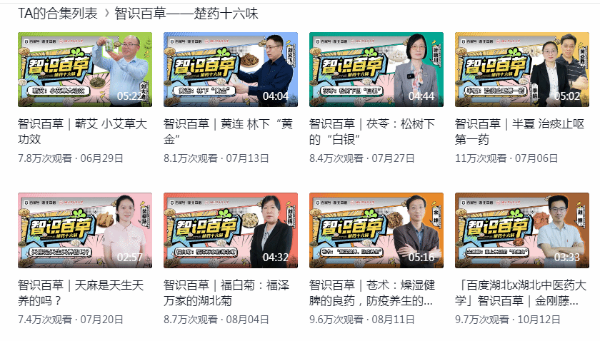 视频中,专家们从日常生活中的问题切入,以科学与生活相融合的独特视角、通俗易懂的讲解方式,通过3-6分钟的讲解,让观众走近湖北道地药材的世界,进一步增进对中医药文化的了解。
