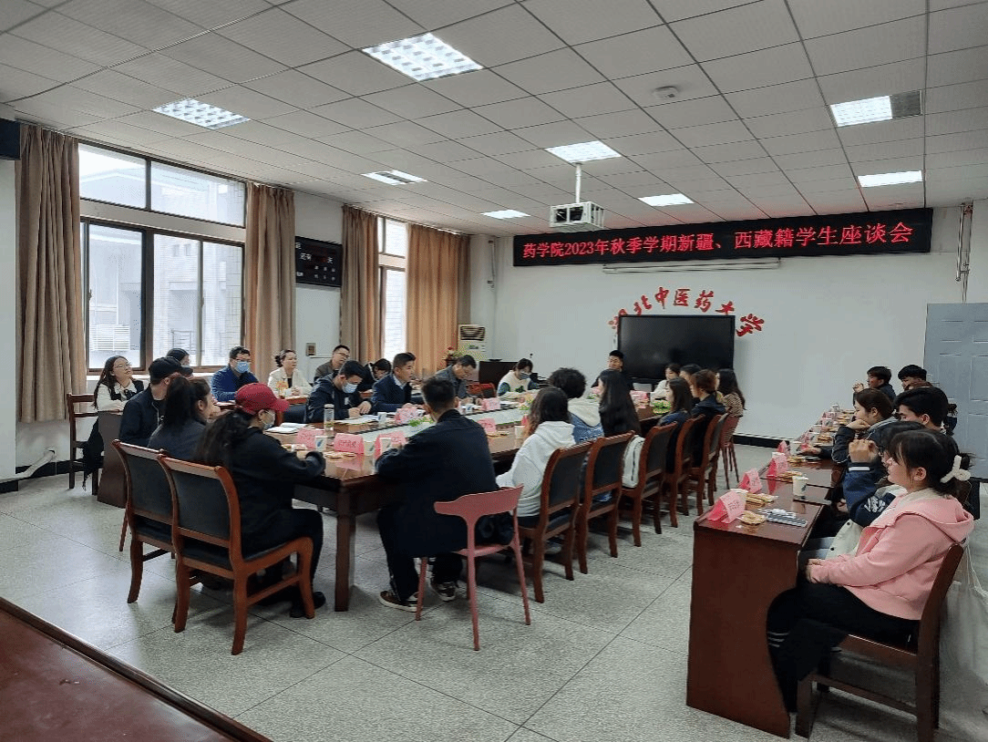 本网讯 11月9日,药学院2023年秋季学期少数民族学生座谈会在本草苑A310会议室召开,学院学生工作负责人、相关负责人,学生工作部学生教育管理安龙老师,学院教学秘书、辅导员,2023级、2020级新疆、西藏籍学生参加座谈会,座谈会由学院工作负责人主持。