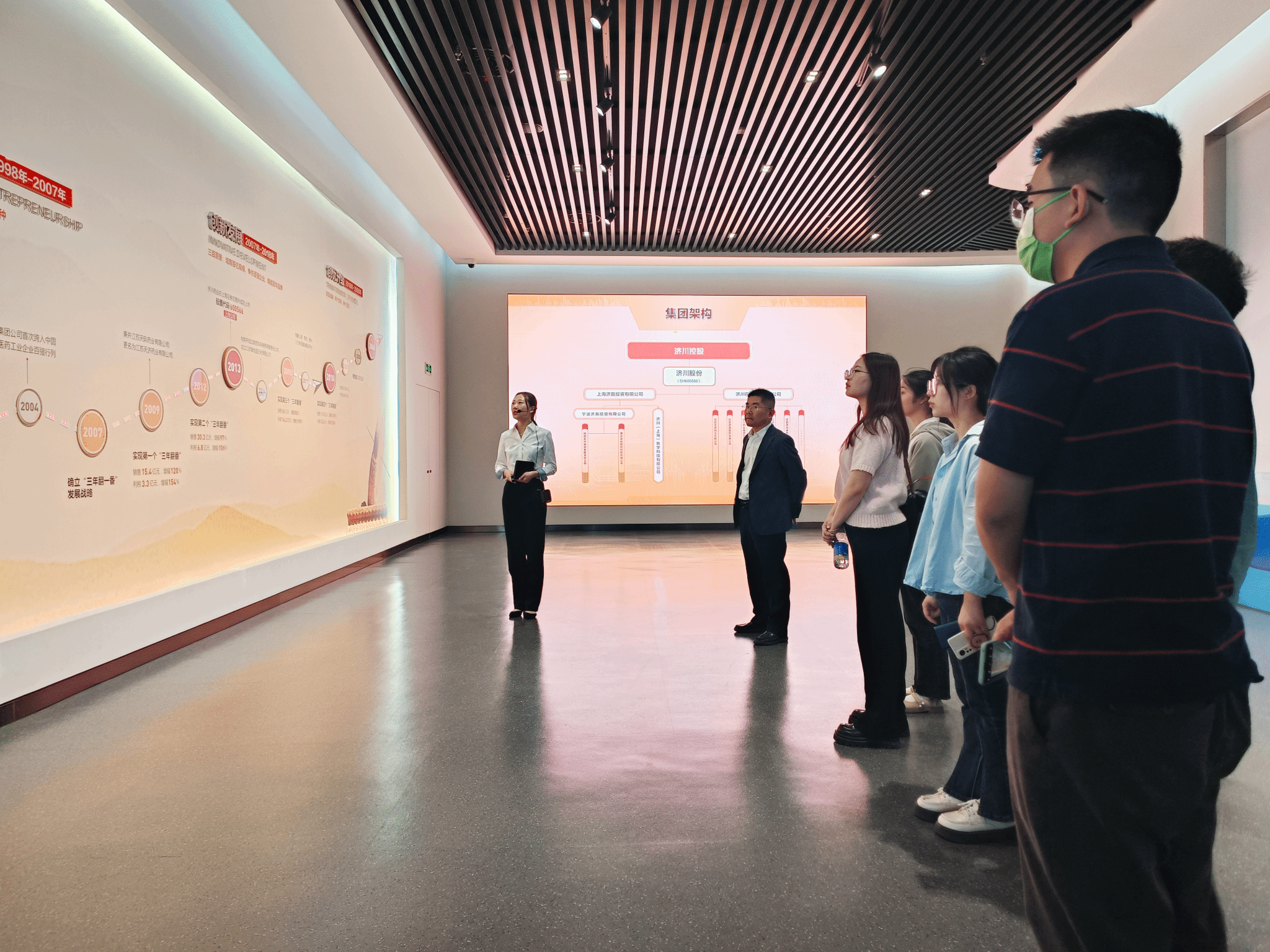 在济川药业集团,师生一行参观了公司总部及健康科技馆。公司相关负责人介绍了企业生产经营、创新发展、用人理念、用人需求等情况。随后的座谈会上,双方围绕如何加强校企合作、提高人才培养质量、促进科技创新和转化等问题进行了广泛探讨,并达成共识与合作意向。