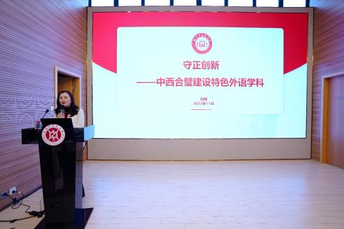 本网讯 11月11日,由中华中医药学会主办,中华中医药学会翻译分会、上海中医药大学承办的“中华中医药学会翻译分会2023年学术年会”在上海召开。全国中医院校外语学科及国际教育部门负责人、中医药翻译专家和学者参加会议。我校中医药国际传播研究中心主任、外国语学院刘娅教授在中医药外语学科发展论坛作题为“守正创新——中西合璧建设特色外语学科”的报告。