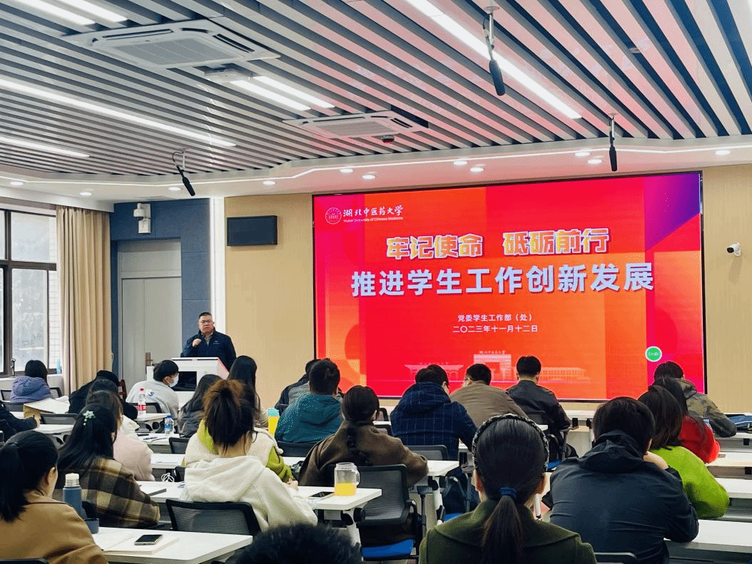 本网讯 11月12日,学校在黄家湖校区药学院Y102智慧教室召开辅导员工作会议。学生工作部全体教职工、各学院专职辅导员参加会议。