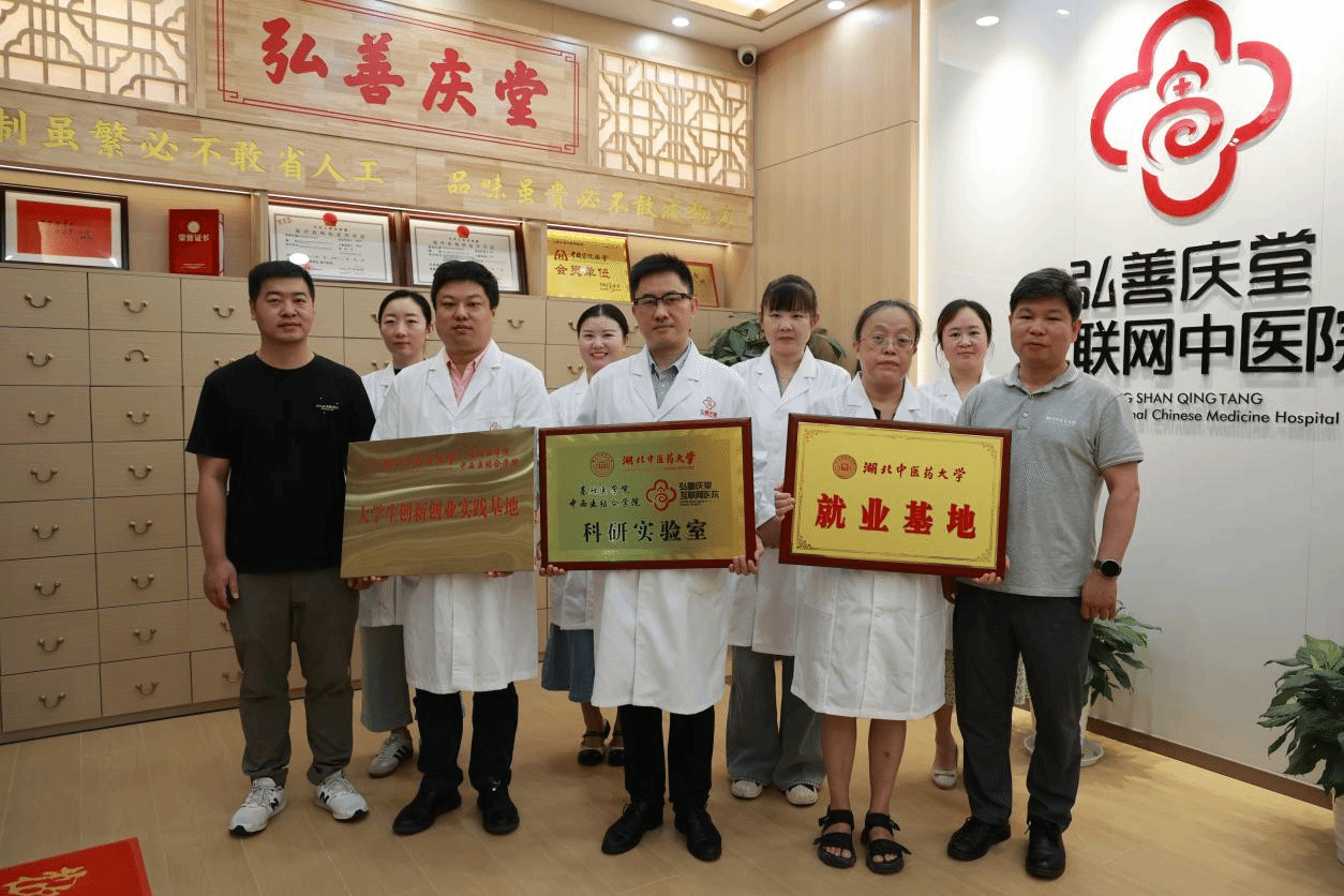 座谈交流结束后,学院相关负责人向弘善庆医堂互联网中医院授予“湖北中医药大学就业基地”“基础医学院大学生创新创业实践基地”以及“共建科研实验室”牌匾,并实地参观了医院各科室。