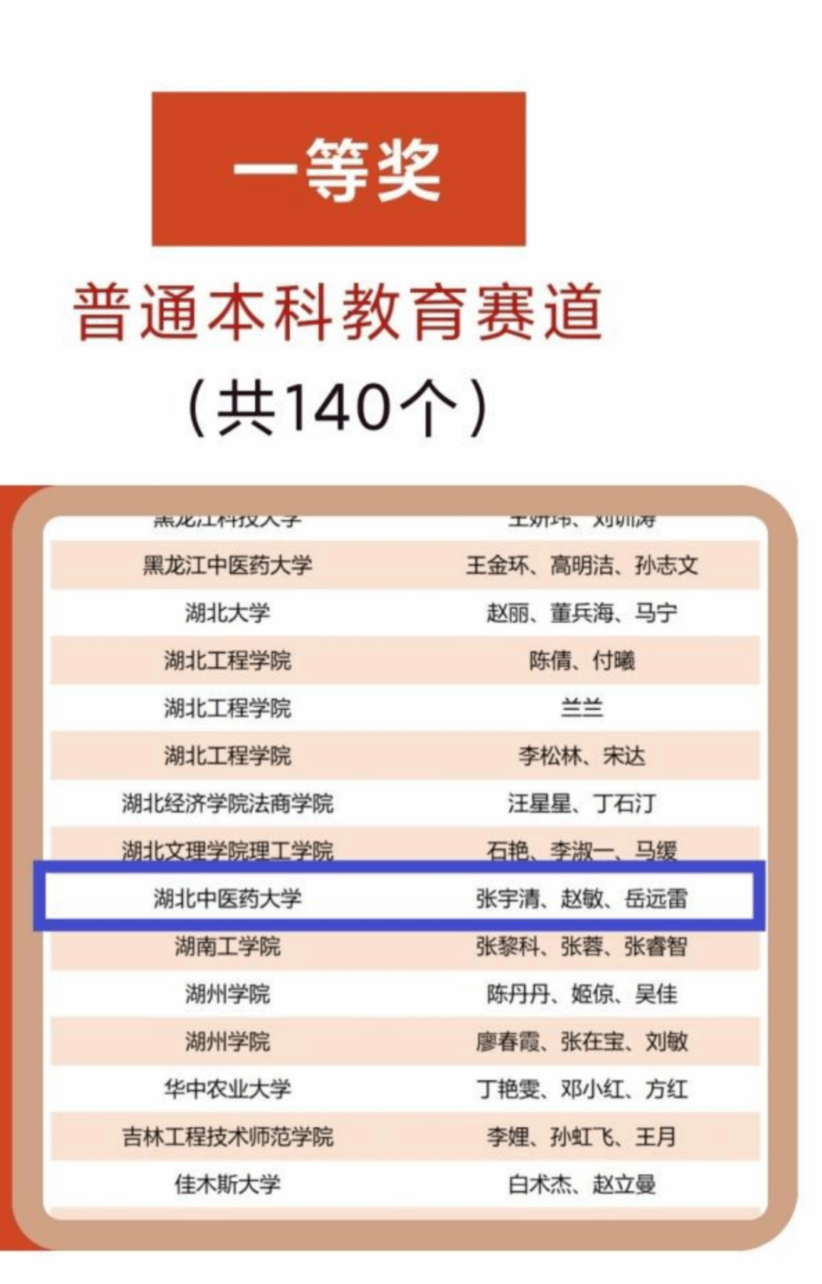 我校《卫生法学》课程先后获批“省级一流课程、校级课程思政示范课程”,课程教学团队获评省级教学团队、省级优秀基层教学组织、“湖北名师”工作室,获“第四届湖北省高校教师教学创新大赛三等奖”,全国医学人文教学竞赛二等奖;校黄大年式教学团队和校级课程思政示范中心。