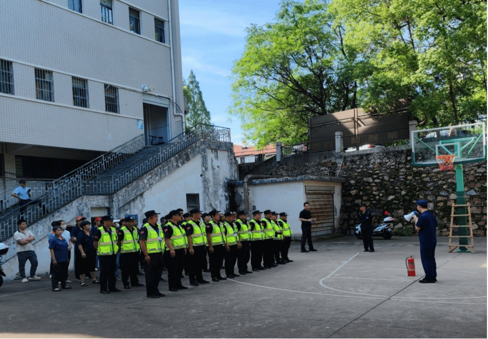 本网讯 7月1日,保卫处、武装部在昙华林校区组织开展初级火灾应急处置演练活动,提升消防应急处置能力,筑牢校园安全防线。活动邀请粮道街消防站、驻校民警现场指导,昙华林校区相关实验室、科研平台师生代表,后勤物业公司、餐饮公司从业人员等参加活动。