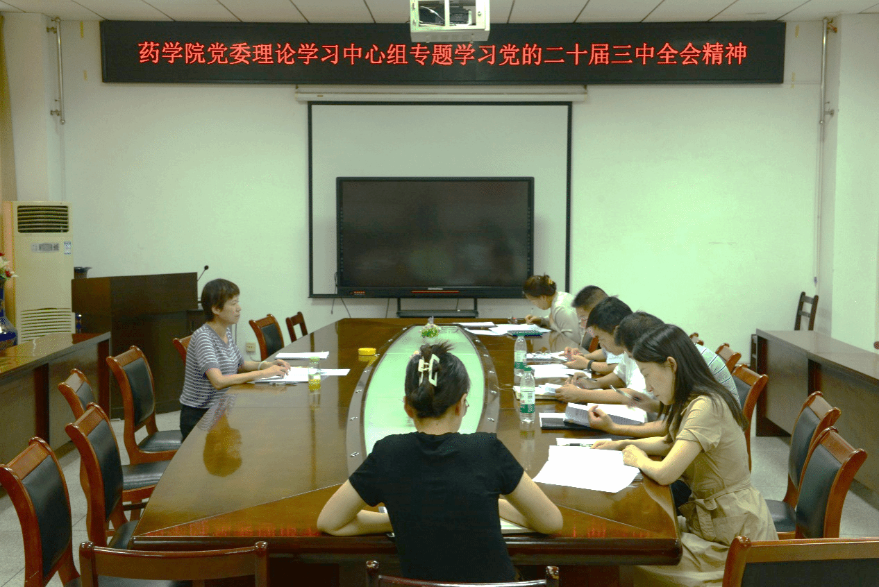 本网讯 为落实学校“能力提升年、作风建设年”有关要求,深入学习党的二十届三中全会精神,7月25日,药学院党委理论学习中心组在黄家湖校区本草苑A310会议室专题学习党的二十届三中全会精神,学院党委负责人主持会议,学院党委理论学习中心组成员参加学习。