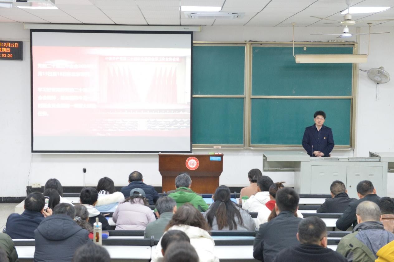 曹继刚从深刻领会党的二十届三中全会精神、深刻把握习近平总书记考察湖北重要讲话精神、贯彻落实教育改革发展新要求和具体举措,以及以本科教育教学审核评估为抓手、助推学校高质量发展四个方面进行了宣讲。