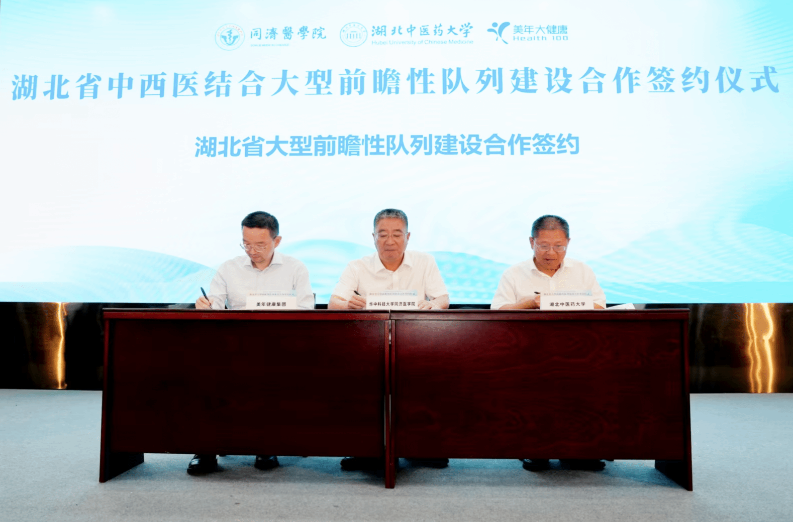 学校与华中科技大学同济医学院、美年健康集团举行湖北省中西医结合百万人群前瞻性队列建设合作签约仪式