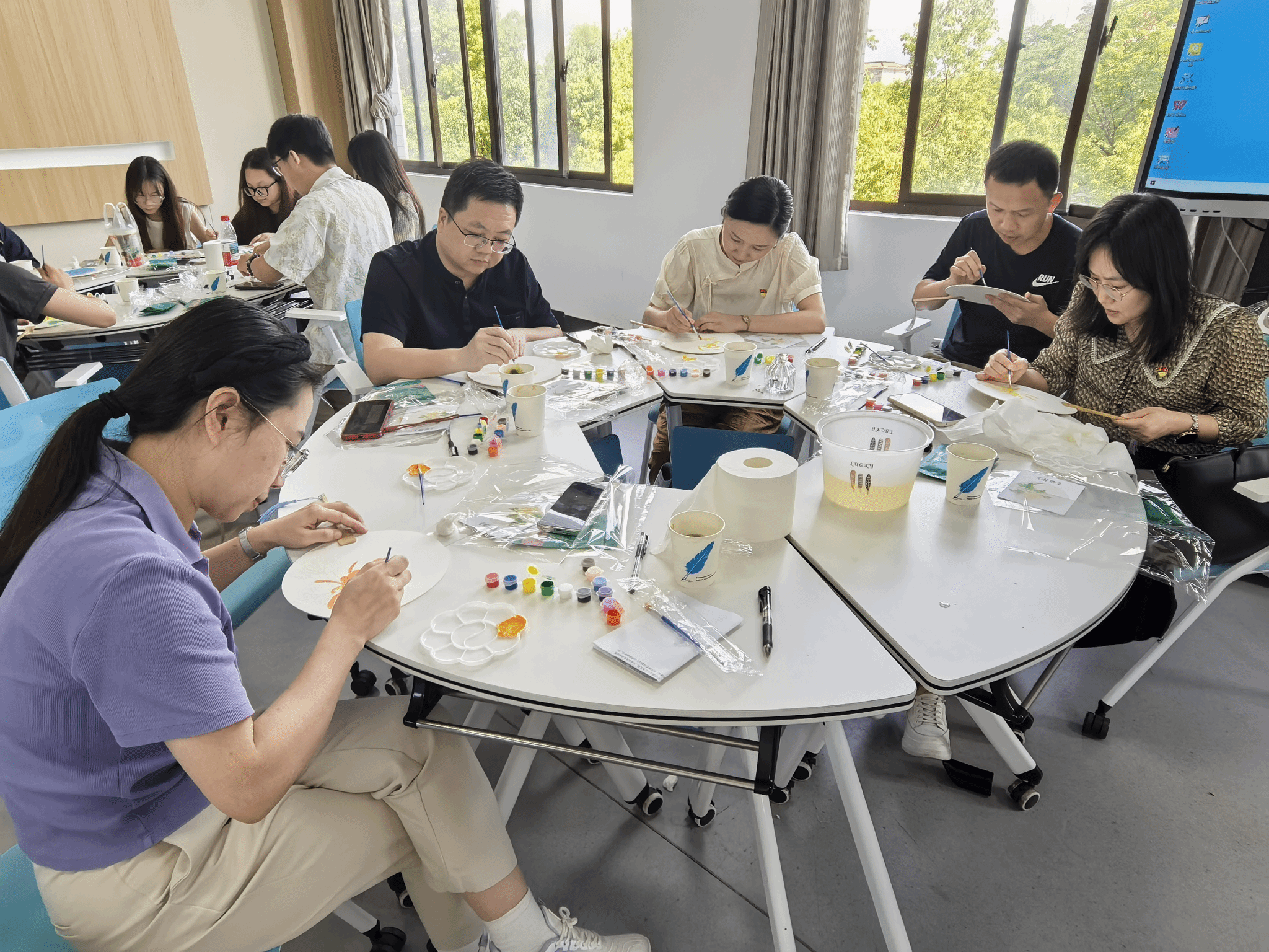 现场,全体师生党员在党旗下重温入党誓词,并为今年新入党的学生党员过政治生日。活动围绕“廉”字主题设置三个特色环节。在“明纪话初心”环节,党员们围绕“廉洁自律、职业坚守、作风改进”展开深度讨论与知识竞答,茶香廉语交织,叩问入党初心,明确纪律红线。在“醒神养正气”环节,伴着悠扬的《清风颂》《一滴清水》等廉洁主题旋律,党员们佩戴菊花眼罩静心反思,在“清正廉洁、务实担当”的浸润中涵养沉心静气、专注实干的优良作风。在“铭志扬清风”环节,党员们执笔在扇面上精心勾勒清菊风骨,并题写精选廉洁格言警句。一笔一画间,菊花的高洁与廉洁箴言的力量跃然扇上,铭刻于心。