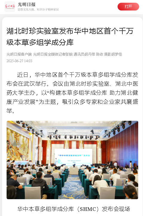 光明日报:湖北时珍实验室发布华中地区首个千万级本草多组学成分库