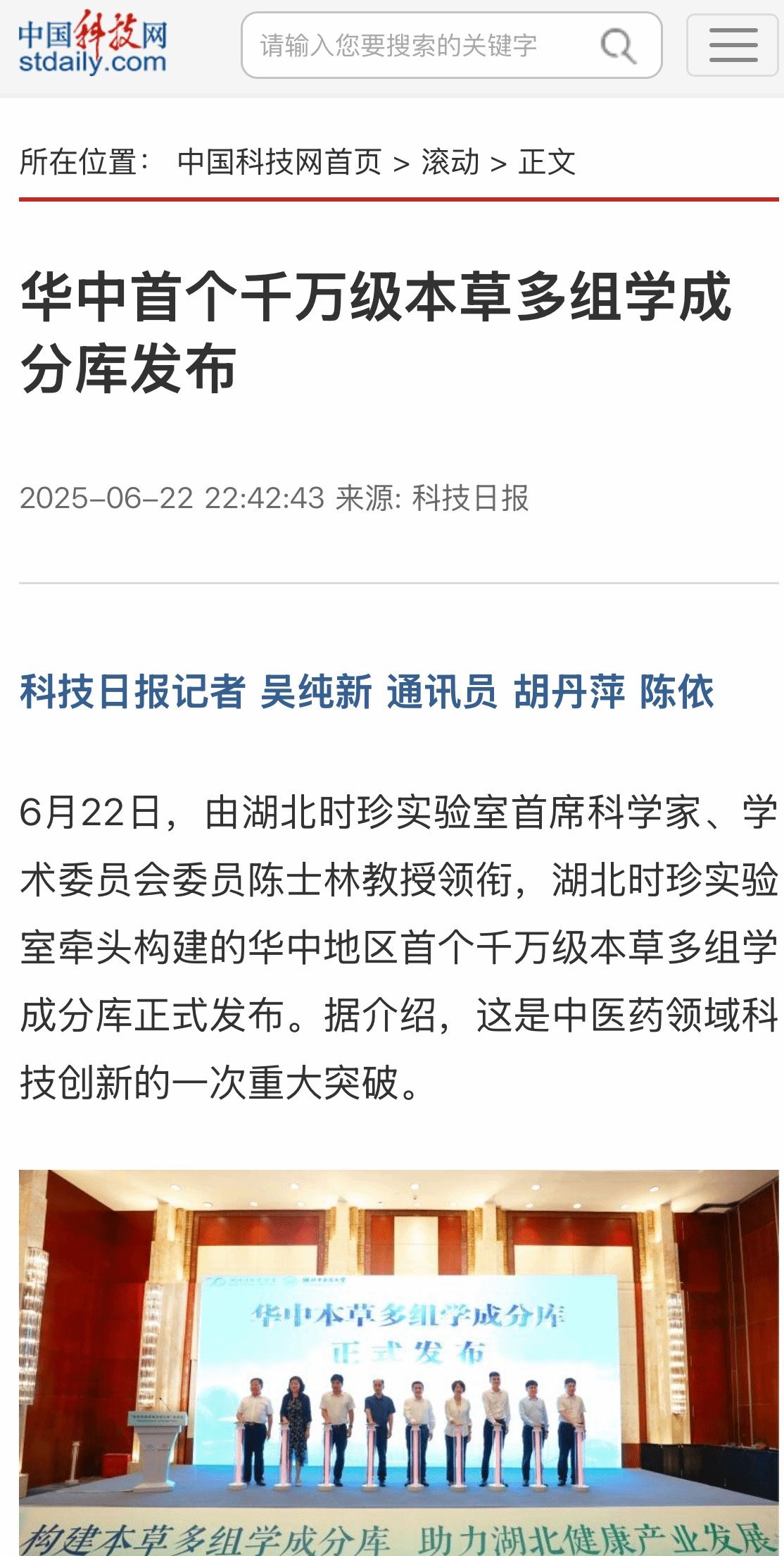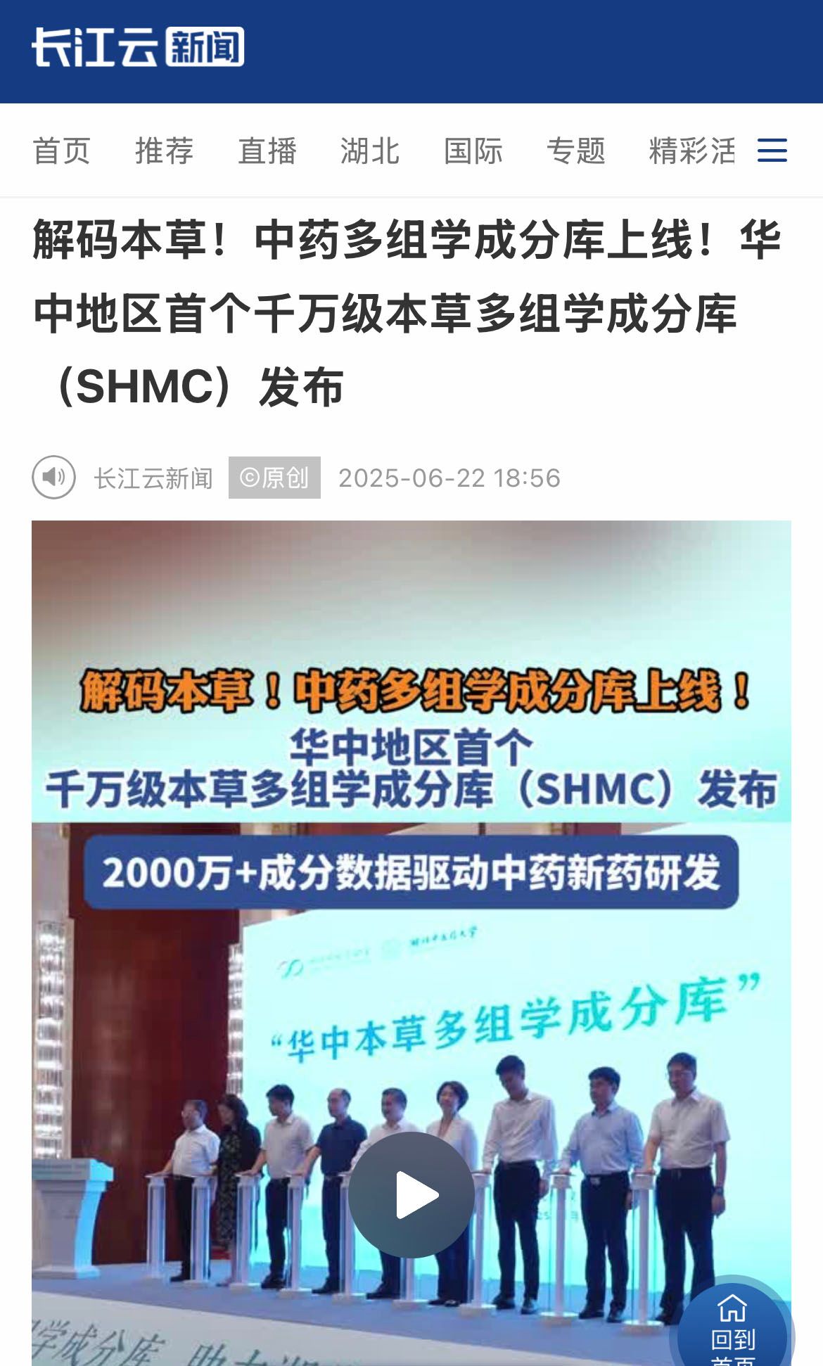 长江日报:“里程碑式的转型成果!”华中地区首个千万级本草多组学成分库在汉发布