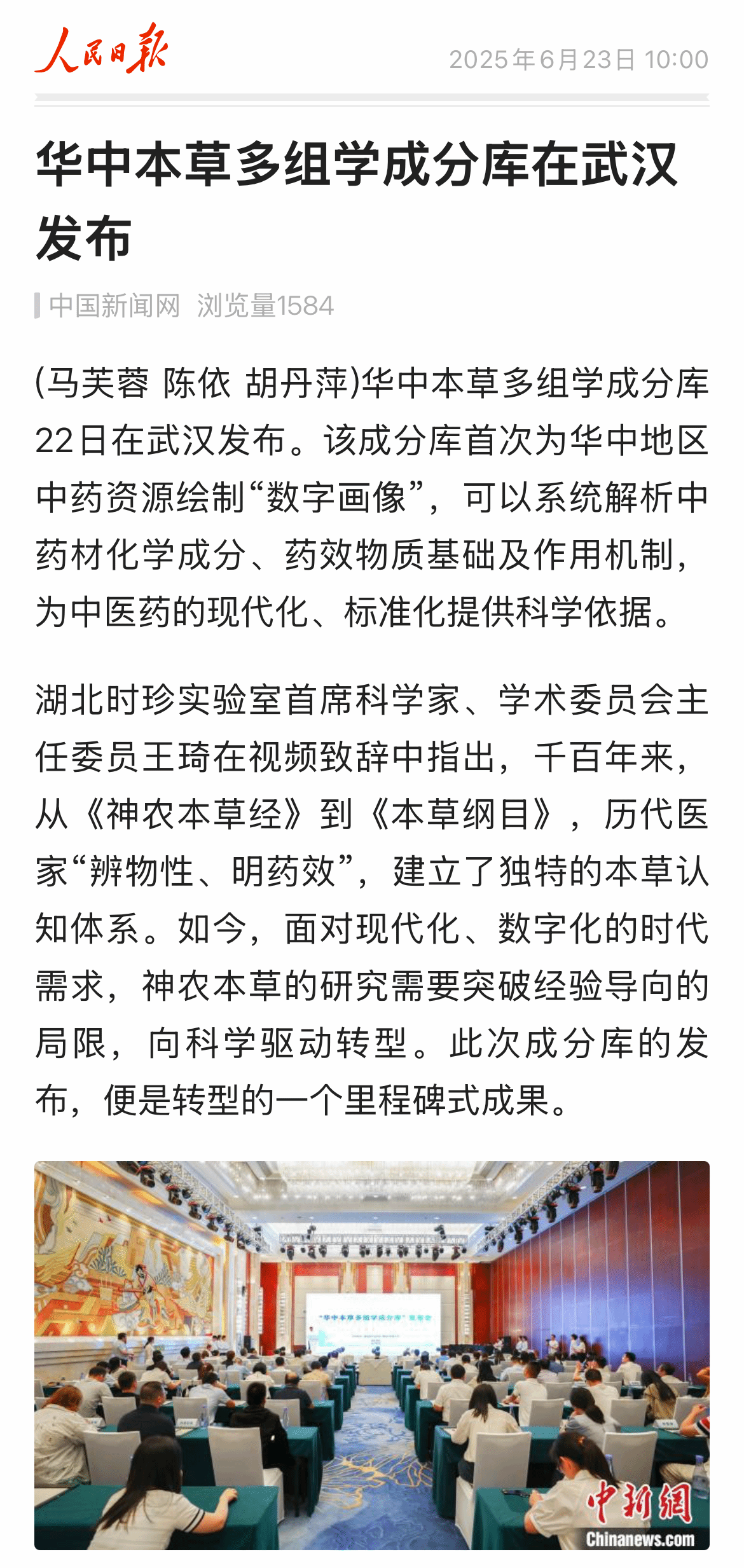 人民日报客户端:华中本草多组学成分库在武汉发布