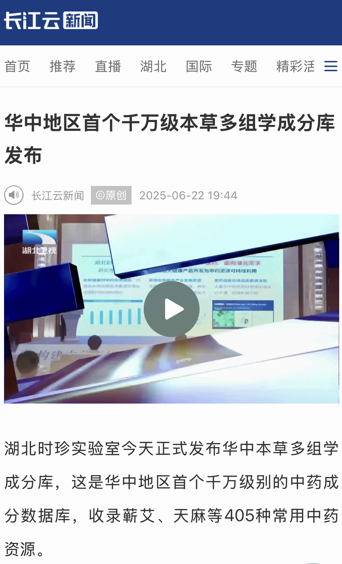 湖北卫视:华中地区首个千万级本草多组学成分库发布