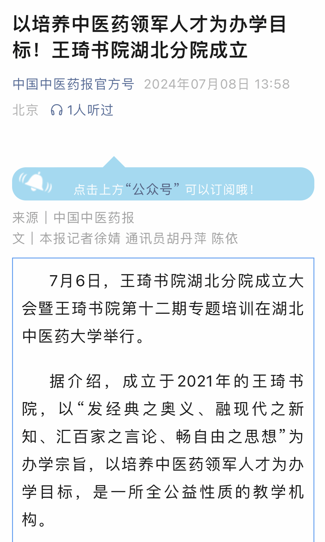 中国中医药报官方号:以培养中医药领军人才为办学目标!王琦书院湖北分院成立