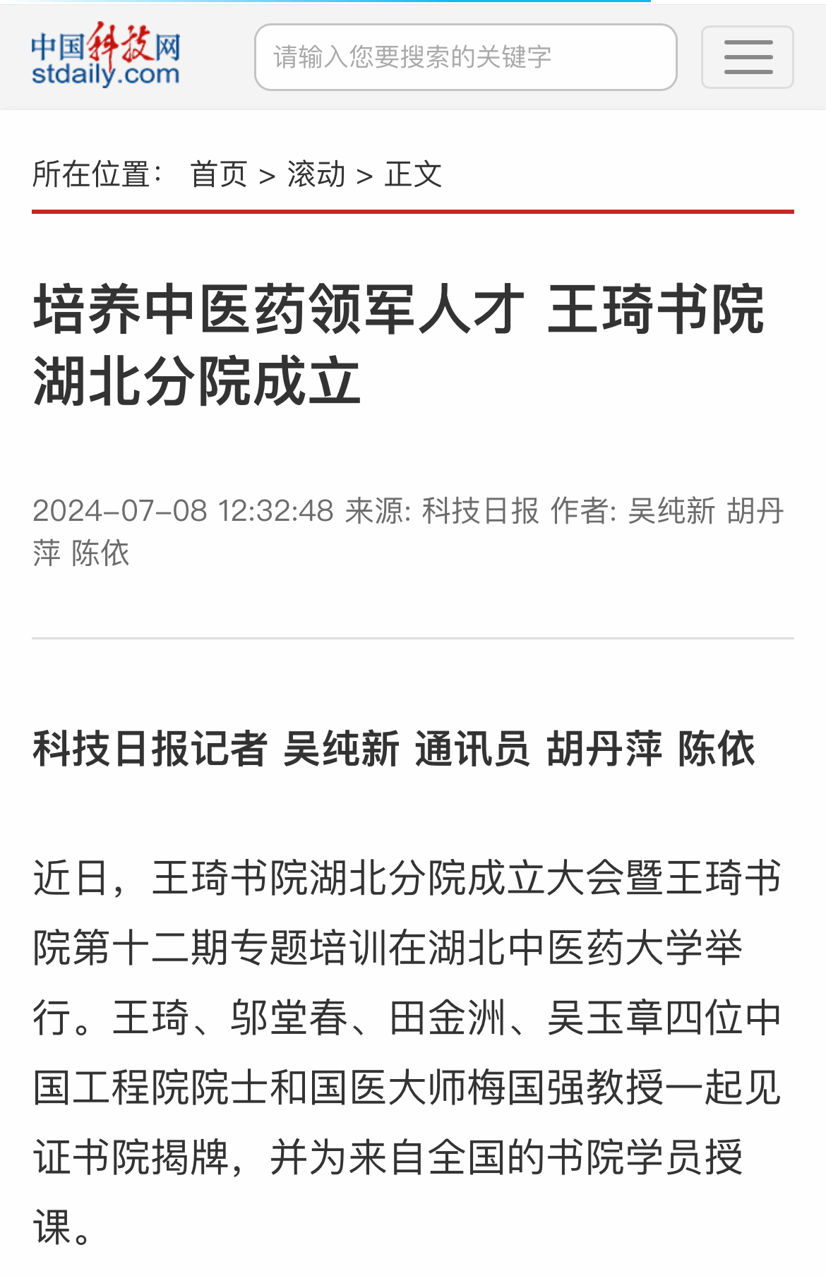 科技日报:培养中医药领军人才 王琦书院湖北分院成立