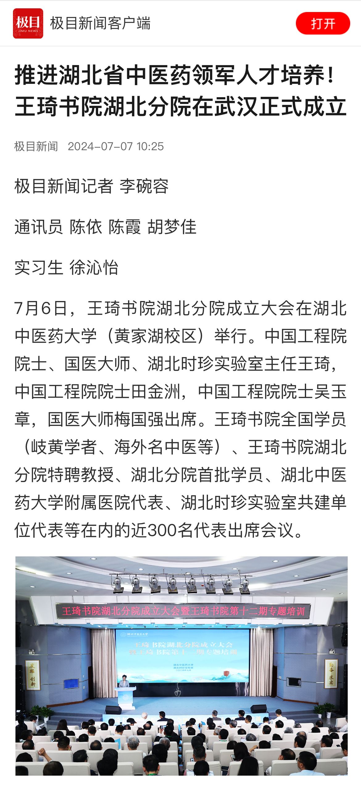 极目新闻:推进湖北省中医药领军人才培养!王琦书院湖北分院在武汉正式成立