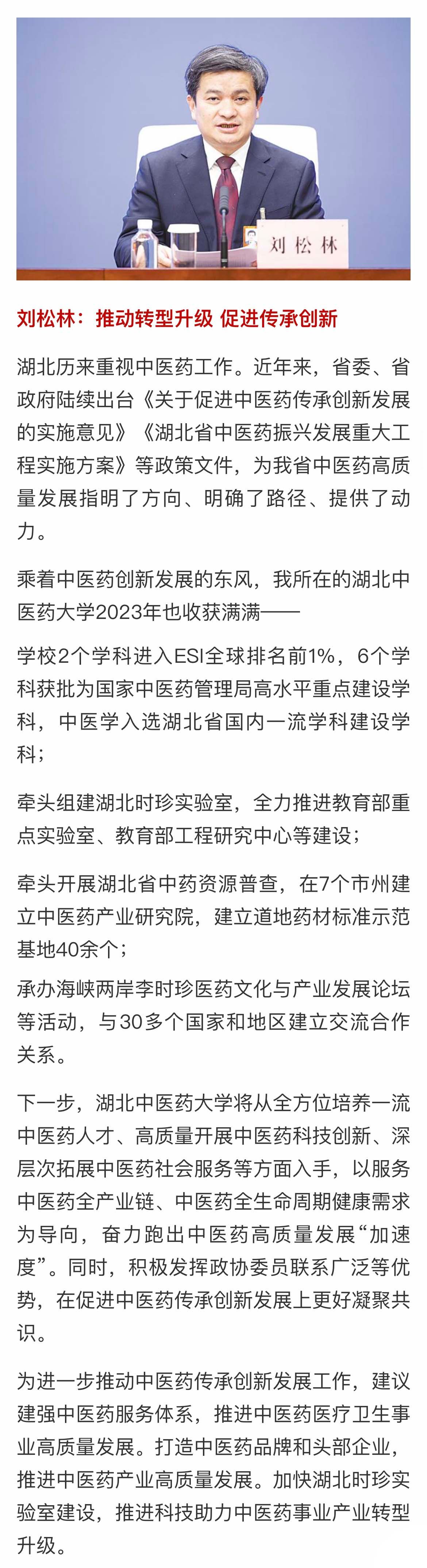 湖北省政协委员、湖北中医药大学校长刘松林:推动转型升级 促进传承创新