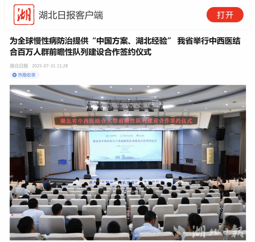 长江云健康:预防慢病,湖北出“大招”!百万级中西医结合健康队列项目正式签约落地
