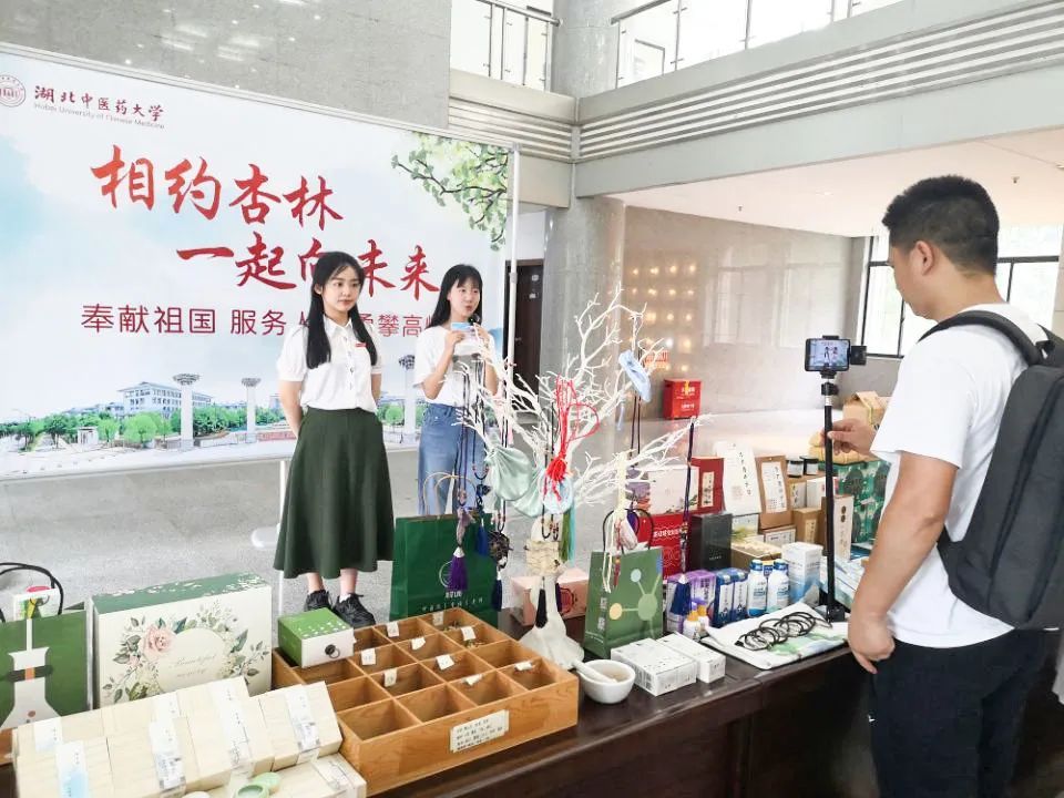2023年,学校举办“走进湖北中医药大学 感受博大精深的中医药文化”校园云开放日直播,鲁谕蓁(左)介绍“挑战杯”竞赛项目