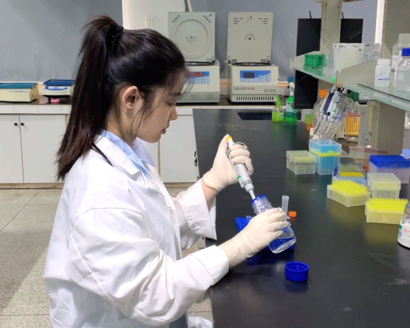 鲁谕蓁进行科研实验