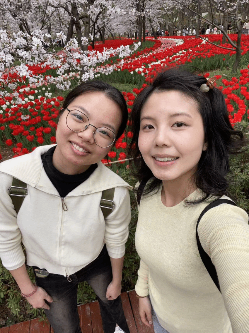 王文琪说:“考研结束那天,我们保研的几个小伙伴约定要抱着花去考场外,给考研的姐妹送花,给她们一个惊喜。”当天回校的地铁上,杨丽琼、王雨佳、蔡泽惠手捧鲜花,留下了一张难忘的合影。同窗之情,如同流星划过的光辉,在女孩们心中留下美好的印记。