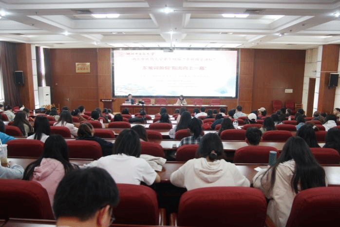 本网讯 4月7日,武汉大学谭新红教授应邀做客我校第十四届“杏林国学讲坛”,为师生作题为“指出向上一路-苏轼在词史上的贡献”的专题学术报告。会议由人文学院党委负责人主持,人文学院、外国语学院近两百名师生聆听讲座。