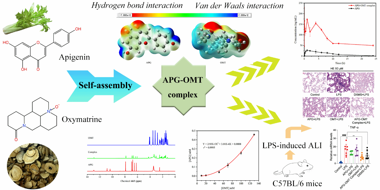 此前,针对该研究方向,团队已在食品科学领域国际著名期刊Food Chemistry(IF:9.231,JCR 1区,Top期刊)发表了研究性论文“Apigenin-oxymatrine binary co-amorphous mixture: Enhanced solubility, bioavailability, and anti-inflammatory effect”。药学院硕士研究生李彬为论文第一作者,药学院卢山副教授,杜鸿志副教授和南方医科大学江翠平博士为共同通讯作者。