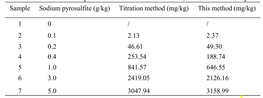 半夏中药材SO2残留的检测结果