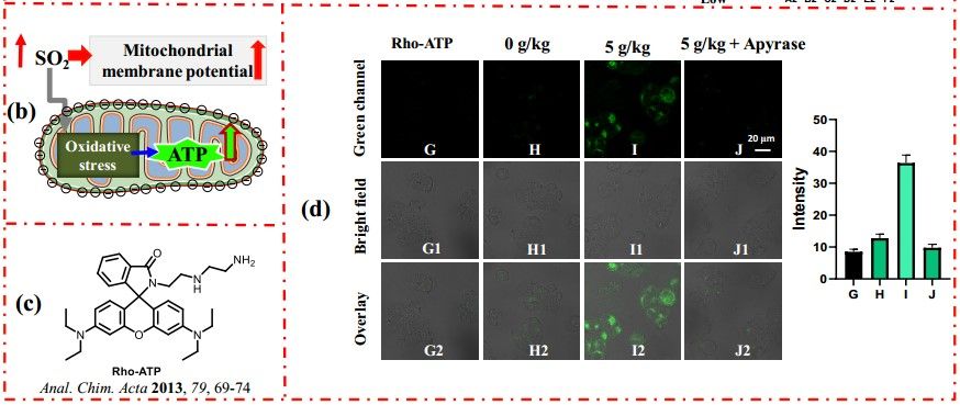 含SO2半夏样品诱导线粒体ATP升高示意图及实验结果