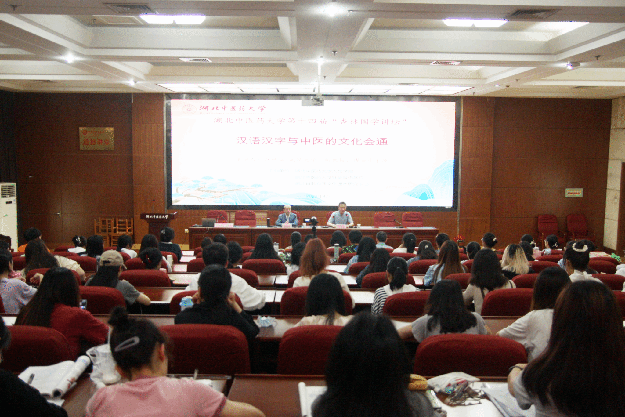 本网讯 4月18日,武汉大学博士生导师、国家语言文字工作委员会科研基地中国语情与社会发展研究中心主任赵世举教授应邀做客我校第十四届“杏林国学讲坛”,为师生作题为“汉语汉字与中医的文化会通”的专题学术报告。校党委常委王彦春主持讲座,人文学院、针灸骨伤学院近两百名师生聆听讲座。
