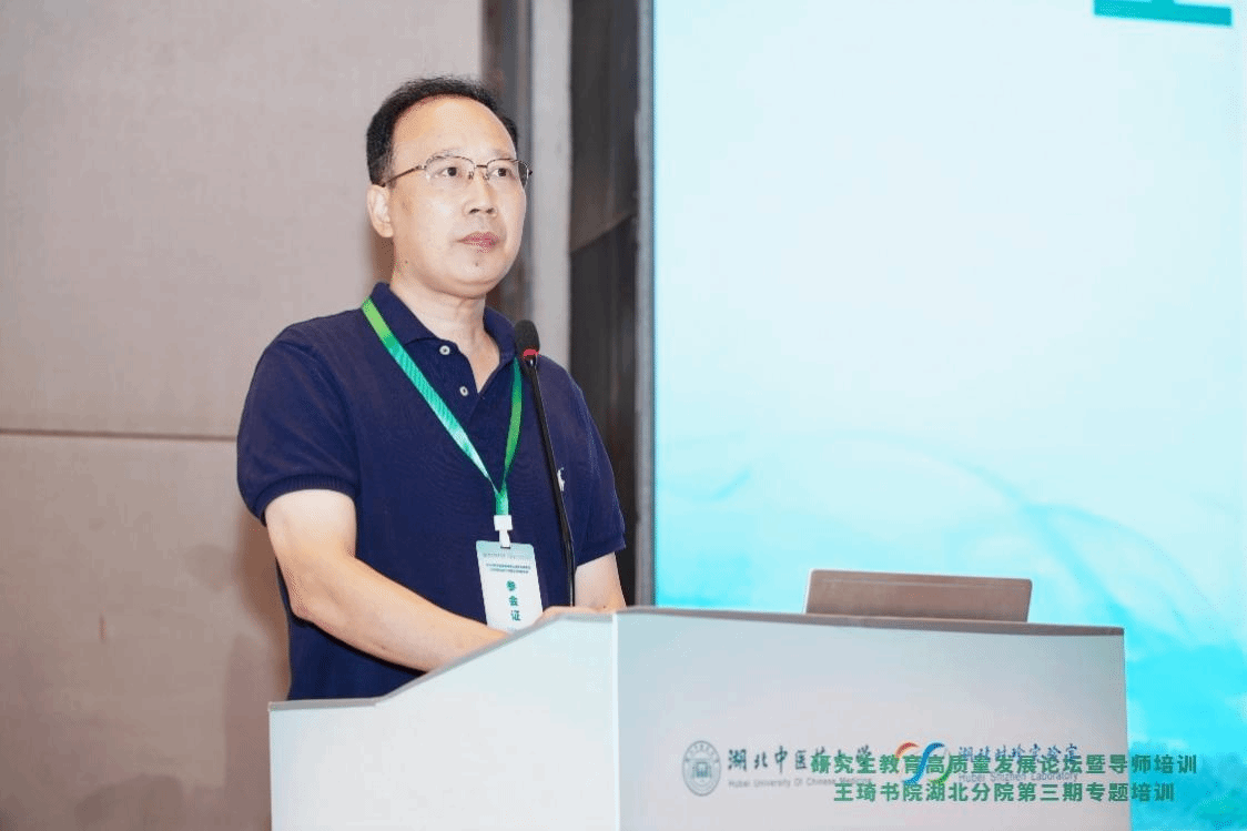 史新华代表湖北省教育厅学位管理与研究生教育处向论坛举办表示热烈祝贺。他指出,推动研究生教育高质量发展,加快培养中医药高层次人才,离不开高水平、高素质的研究生导师队伍。导师是研究生培养的第一责任人,要认真贯彻《研究生导师指导行为准则》,不断加强学习,提高指导水平。省教育厅将持续加大政策供给,支持学校深化综合改革,在全省研究生教育高质量发展中彰显中医药特色。