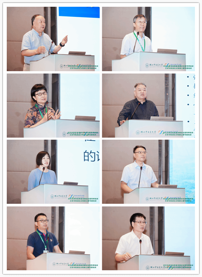 南京中医药大学段金廒教授、北京中医药大学陶晓华教授、中日友好医院李平研究员、武汉大学人民医院王高华教授、华中科技大学同济医学院附属同济医院董慧教授、华中科技大学章劲元教授、华中科技大学邱进俊副教授、我校谭子虎教授等8位专家,分别以“学科交叉赋能中医药事业与产业高质量发展”“中医文献中的专病通治方及临床应用”“科学研究带动学科发展,促进复方中药的成果转化”“心理健康的概念、内涵和调适”“中西医结合临床试验设计思路与方法”“研究生心理问题的应对与导师自我关怀”“恪守学术道德 遵守学术规范”“传承 创新 树人——导师的育人之道与团队建设”等主题作了专题辅导报告。