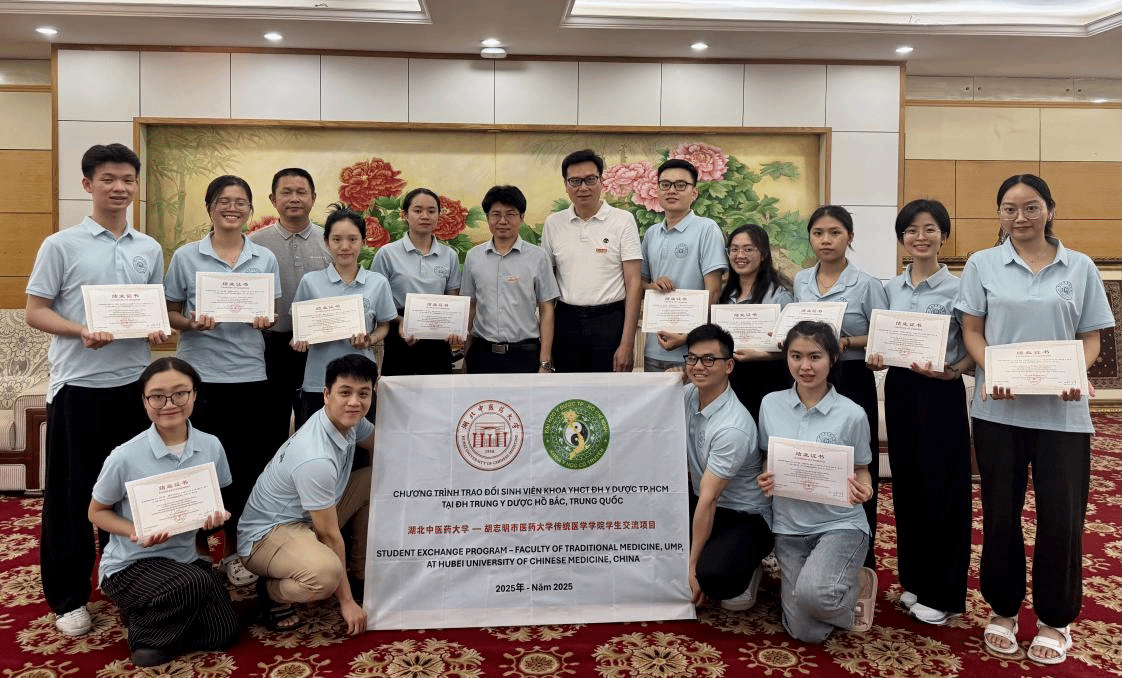 本次游学项目设置中医药经典教学课程、中医药特色诊疗技术临床跟诊等活动,我校针灸骨伤学院、基础医学院专家团队为胡志明市医药大学师生讲授了中医针灸推拿、全息疗法及中医药文化概论等理论知识。学校附属国医医院(武汉市中医医院)中医世家传承人、骨伤科专家为学员进行艾灸拔罐、中医临床诊断及“汉派松筋正骨”非遗技术等专题讲座。在学校附属医院(湖北省中医院),学员参观医院文化长廊、现代化中药房、中医传承工作室,观摩中医临床诊疗技术,品尝应季中药养生茶,观看中医功法表演,并在医院针灸科、推拿科、骨伤科等进行临床跟诊学习。胡志明市医药大学师生还参观了我校科技创新中心、药用植物园、中医药标本馆、图书馆等,详细了解学校教育教学环境和专业特色优势。