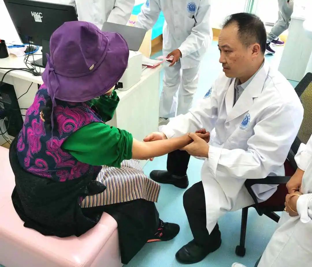 下午3点半,刚到昌都的医疗专家们,脸色苍白、嘴唇发紫、步履艰难,他们还没从高原反应中缓过来,就努力克服旅途劳累、身体不适,迅速投入到紧张的义诊工作中。
