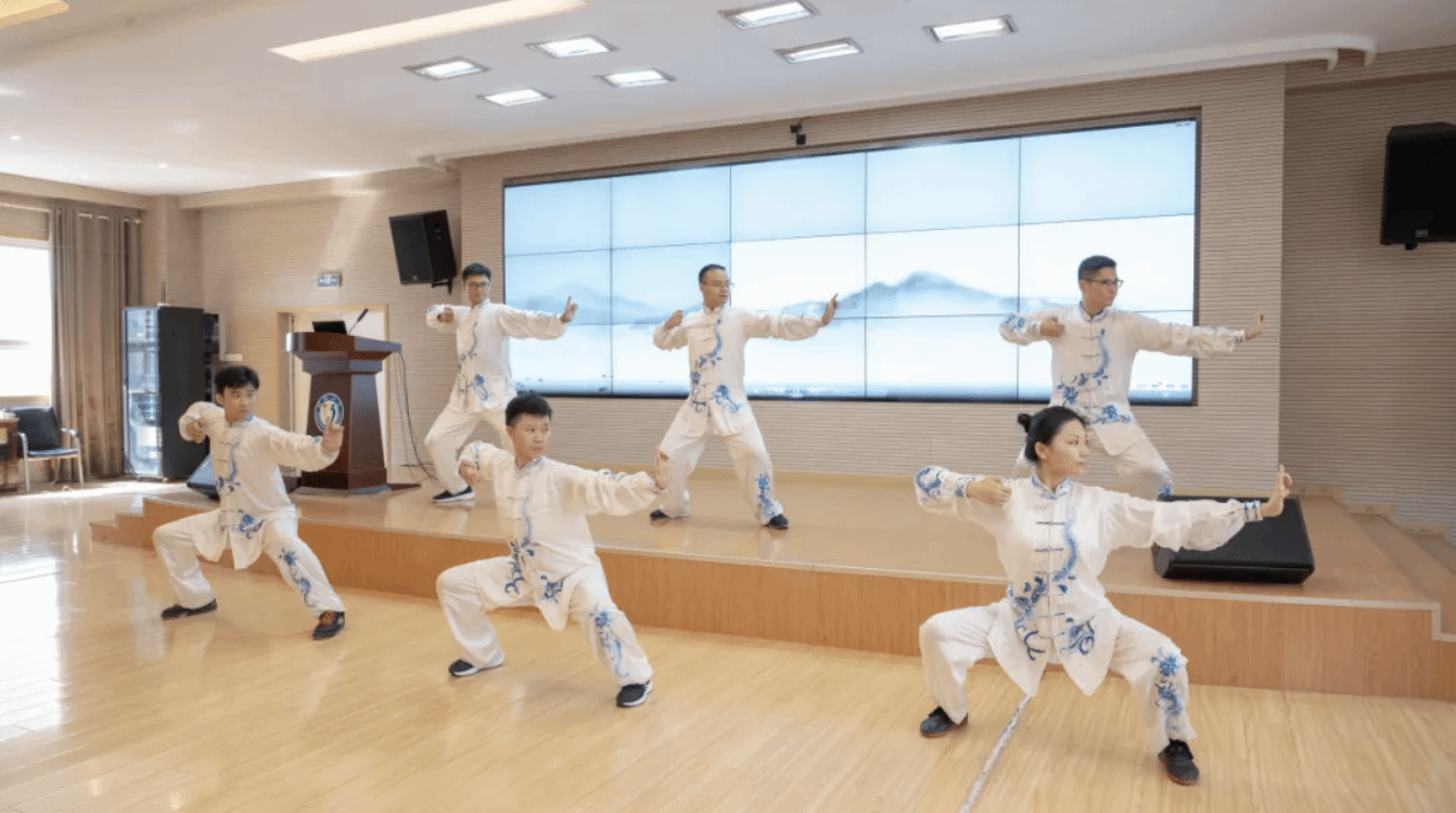 现场,学校武术队杨婧博士带领团队硕博士研究生展示养生功法——八段锦。同学们与团队师生进行了问答互动、观摩中药材,气氛热烈。