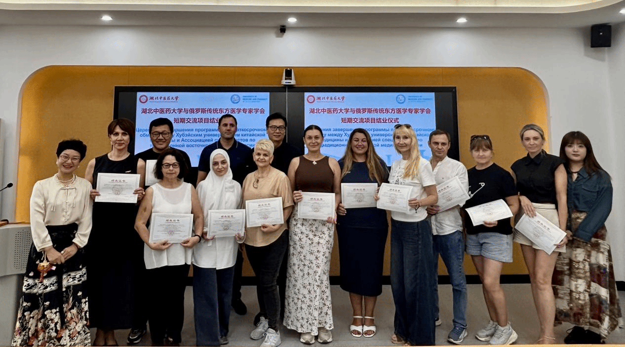 结业仪式上,国际教育学院负责人回顾了学校与俄罗斯传统东方医学专家学会开展交流合作的情况,并为学员们颁发了结业证书。他表示,希望学员们回国后多分享在湖北中医药大学的研学经历,推广中医药诊疗技术,欢迎更多俄罗斯中医药文化爱好者来校学习交流。俄罗斯学员代表德米特里在发言中表示,授课专家教学水平及临床技能高超,教学成效突出,回国后会继续推广和传播中医药文化,更好地服务俄罗斯民众健康。