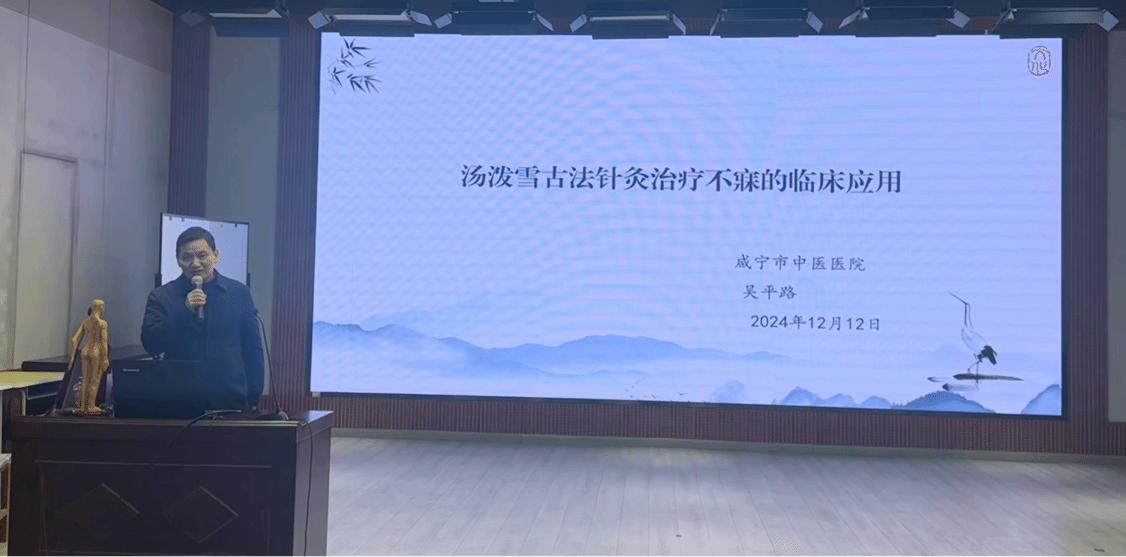 本网讯 近日,中医学院在昙华林校区图书馆四楼报告厅开展“非遗中医药进校园”活动,邀请湖北省第七批非物质文化遗产代表性项目(传统医药类)——汤泼雪古法针灸传承人、咸宁市中医医院脑病科主任、肺病科主任吴平路作“汤泼雪古法针灸治疗不寐的临床应用”专题讲座。学院相关负责人主持讲座,学院全体教职工、学生代表聆听讲座。