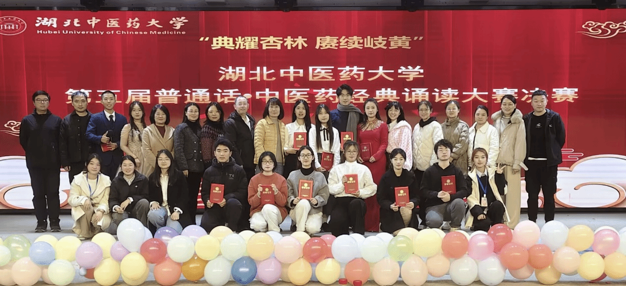 本网讯 为进一步强化学生对语言文字规范使用的认识,提高普通话表达能力,传承弘扬中医药文化,11月27日,学校在黄家湖校区大学生活动中心举行第五届普通话·中医药经典诵读大赛。国家普通话测试员、我校刘昌慧老师、湖北省普通话测试员、我校杨思佳老师、王静芝老师、汉语国际教育专业负责人许静荣老师、艺术教研室主任侯艳老师担任大赛评委,医学人文学院领导班子出席活动。
