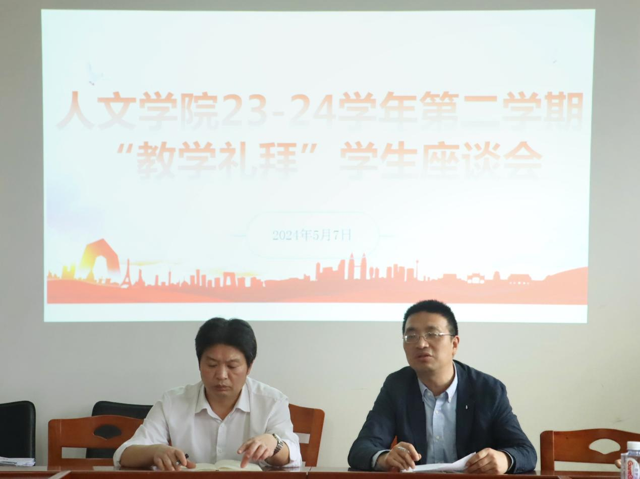 为进一步了解学生需求,倾听学生心声,5月7日下午,我院于立言楼B411室举办“教学礼拜”师生座谈会。人文学院党委副书记罗振军、学工办主任李涛、辅导员黄俊、唐逸芸与各年级学生代表参会。