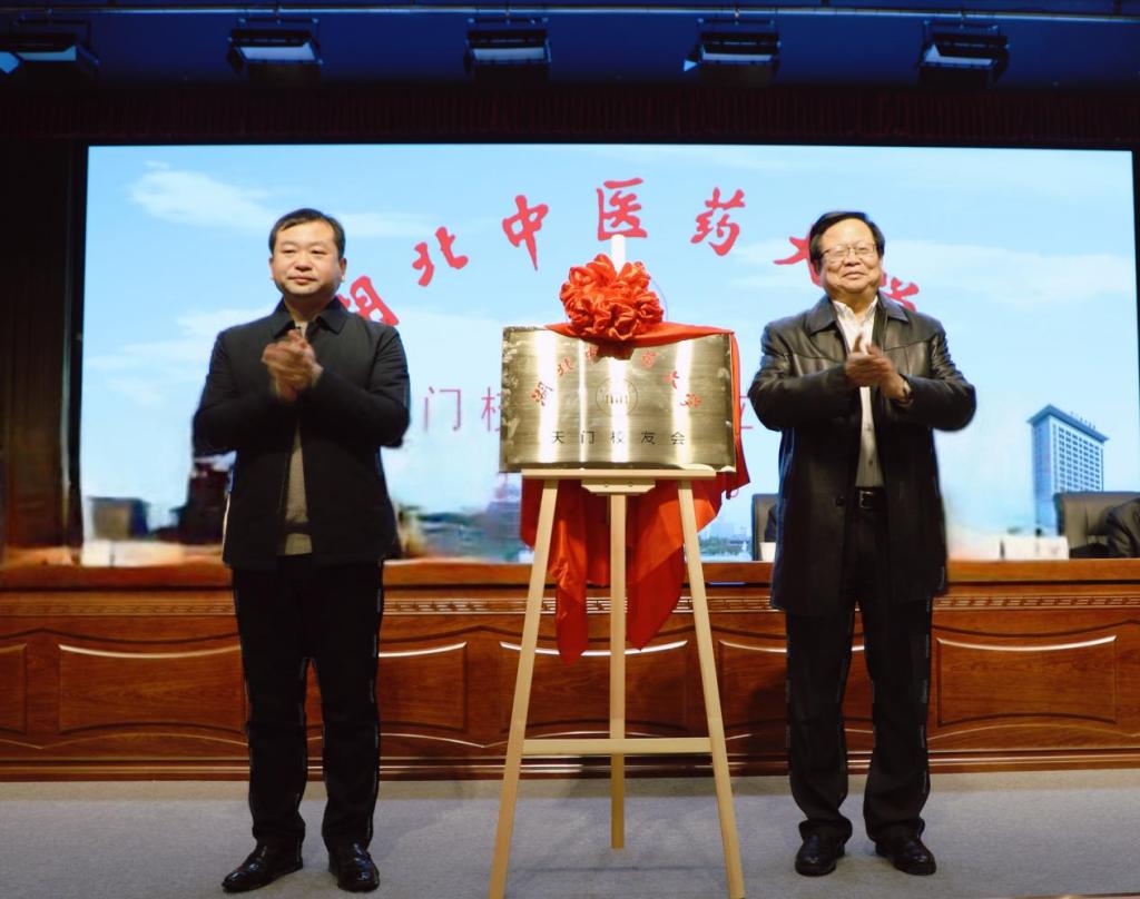 校长、校友总会会长吕文亮与天门校友会会长肖少雄为天门校友会揭牌