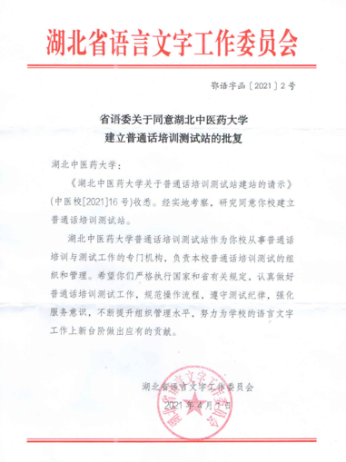 6.获批建立“湖北中医药大学普通话培训测试站”,全年开展普通话测试1075人次。