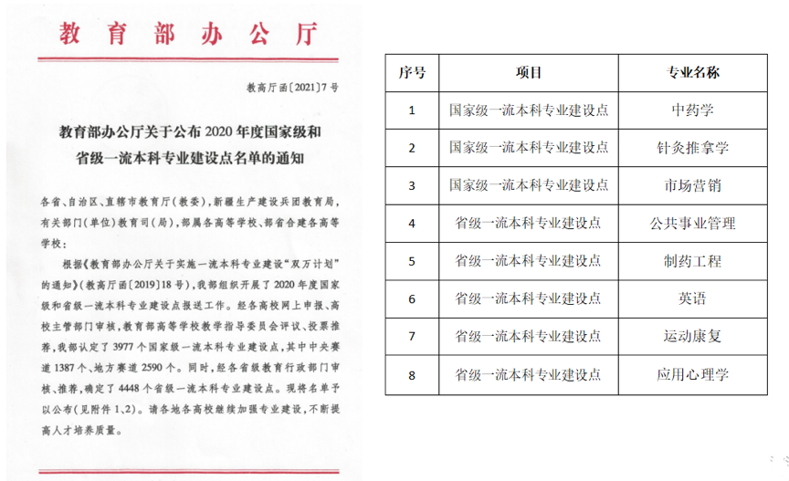 1.学校2021年获批3个国家级一流本科专业、5个省级一流本科专业(目前,学校共有5个国家级一流本科专业、10个省级一流本科专业)。