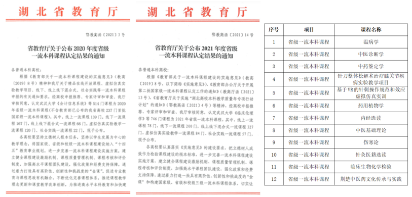 4.加强临床学院建设。学校与湖北省中医院、武汉市第一医院、武汉市中医医院、湖北省中西医结合医院、襄阳市中医医院、黄石市中医医院、十堰市中医医院共建临床学院7家,加强附属医院建设与组织管理,推广床边教学模式,深化医教研协同。