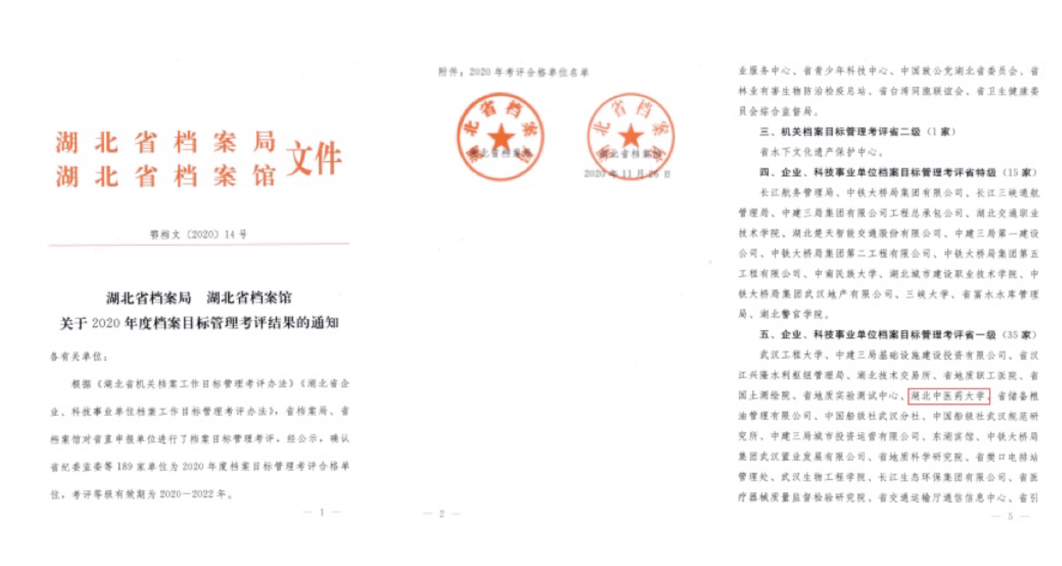 1.学校获评湖北省企业、科技事业单位档案目标管理考评“省一级”单位。