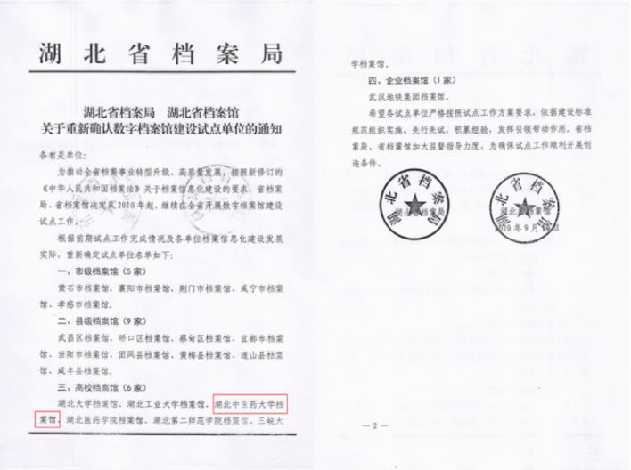2.档案馆获评湖北省数字档案馆建设试点单位。