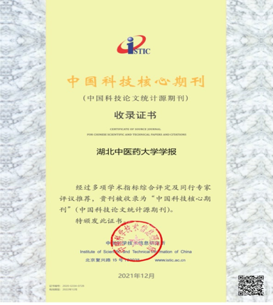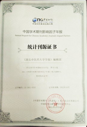 2.《湖北中医药大学学报》入选2021《中国学术期刊影响因子年报》统计源期刊。