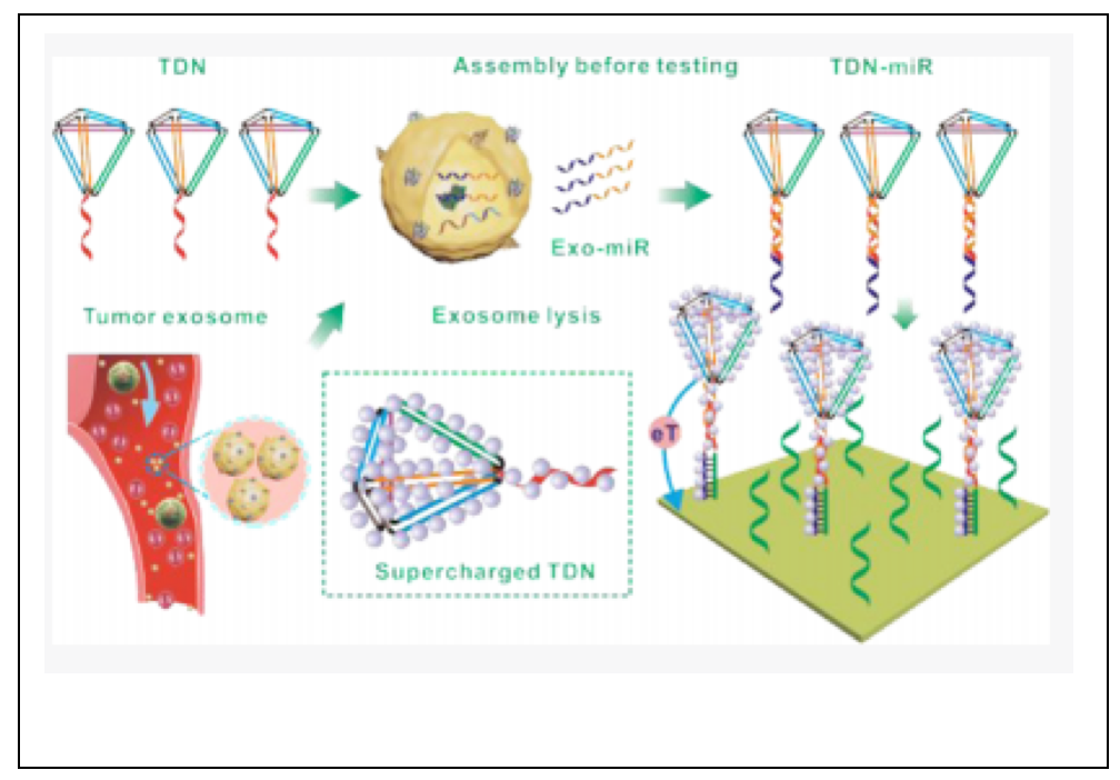 基于四面体DNA结构的电化学生物传感器检测外泌体microRNA示意图