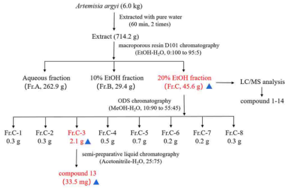 图1 活性导向分离艾叶水提物中的化感活性物质