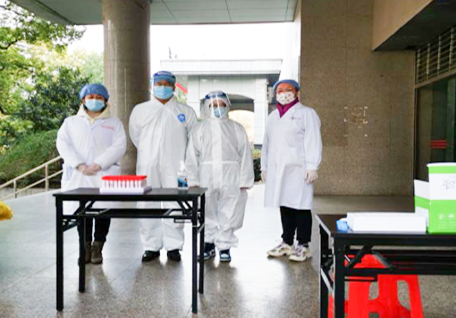 2月24日,黄家湖校区和昙华林校区同时开展教职工全员核酸检测工作。现场,党员志愿者提醒大家带好口罩、保持一米安全距离,帮助老同志打开健康码,确保核酸检测有序进行,在黄家湖医院医护人员的努力下,全天完成近2100名教职工及校内外包服务公司员工的核酸检测工作。