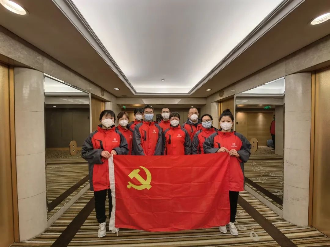 附属湖北省中医院援沪医疗队由24名医护组成:肖明中、张仁谦、何堂清、李悦、杨晶、张利、张雪娇、舒瑶、张妍祯、宋浩、陈晶晶、肖小花、杜建雄、廖悦、钱盈、陈江琼、朱敏华、陆丹、田枫叶、李羚、贺杭、王珝、张寒、万好平,其中9名医务人员为党员,他们成立了临时党支部。领队肖明中表示,“感谢医院党委行政和全体同事的信任和支持!在党旗领航下,我们一定发挥党员先锋模范作用,全力以赴,按时按质完成组织交给我们的任务,安全顺利返回!”