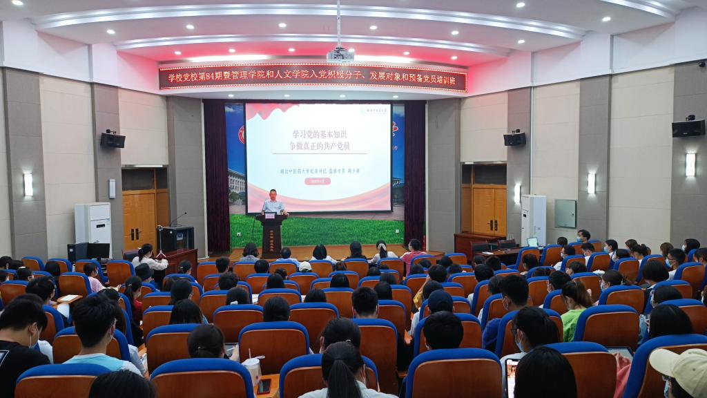 本网讯 4月12日,学校党校第84期管理学院、人文学院入党积极分子、发展对象、预备党员培训班在黄家湖校区S101学术报告厅开班。校纪委书记、监察专员胡少萍以“学习党的基本知识 争做真正的共产党员”为题,为培训班学员讲授专题党课。管理学院和人文学院领导班子成员、全体辅导员老师、入党积极分子、发展对象、预备党员代表以及机关党委入党积极分子代表聆听党课。开班仪式由管理学院负责人主持。